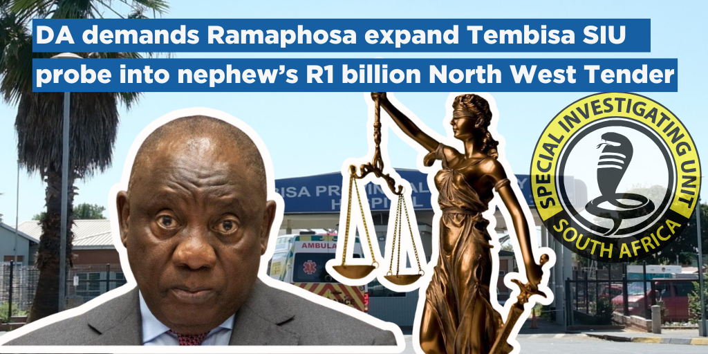 The Democratic Alliance (DA) is calling on President Cyril Ramaphosa to immediately expand the SIU investigation into Tembisa Hospital corruption. This must include all dealings of Hangwani Morgan Maumela and his syndicate, including Maumela’s latest attempt to secure a R1 billion food supply tender in the North West, as well as all other companies and individuals identified by the SIU as part of corrupt networks.