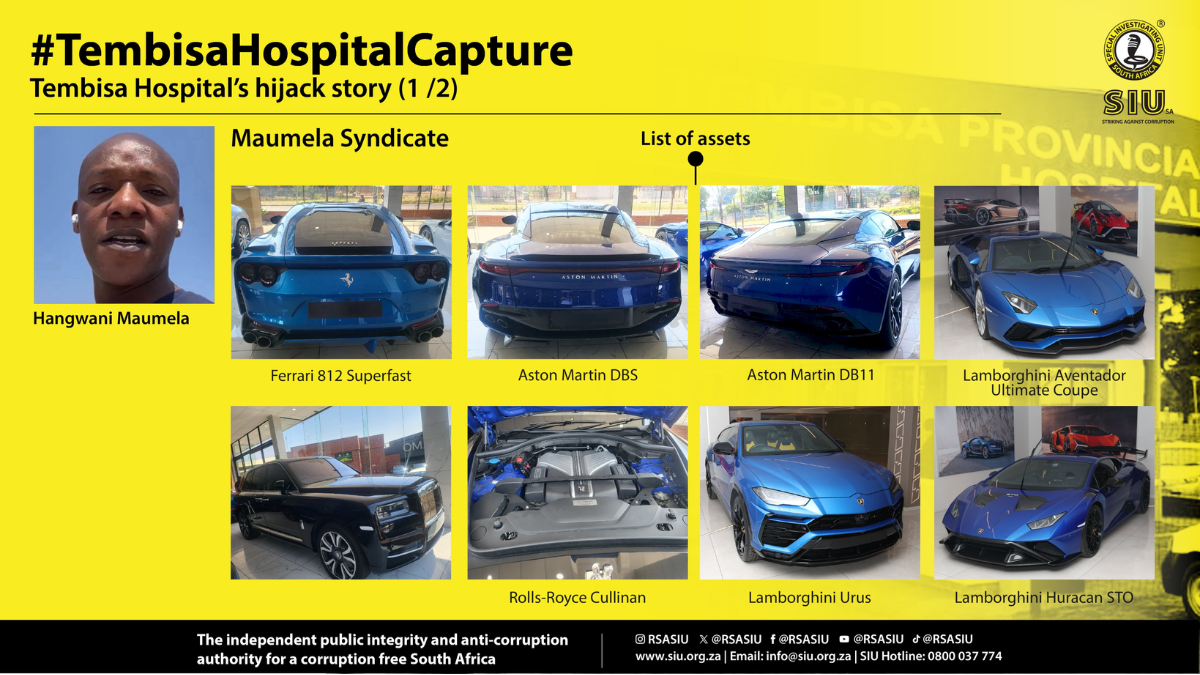 “The orders are a critical step in our commitment to claw back every cent that was stolen from the public purse, specifically Tembisa Hospital,” said SIU Head Advocate Andy Mothibi.