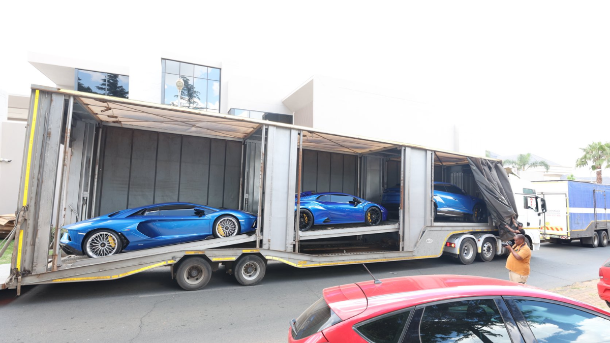 - Three Lamborghinis: estimated value R25 million